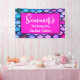 Un diseño tan bonito, jovial y moderno con escalas de sirena magenta, violeta y azul. Banner de bienvenida perfecto para tu celebración de cumpleaños en la playa fiesta cerca del mar. Foto: Tim Mossholder de Unsplash