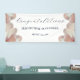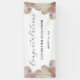 Elegante Banner Magnolia Boda Floral rosa y blanco para sus accesorios de recepción. Este cartel colgante está diseñado con detalles de flores de magnolias rosas y blancas sobre un fondo blanco. El texto incluye: Felicitaciones, el Primer Nombre y Fecha Boda de Bride & Groom. Para personalizar, simplemente inserte sus detalles en nuestra plantilla sencilla, reemplazando el texto de ejemplo.