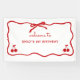 Cerezo de mano en la parte superior, Signo de bienvenida de cerezo de Coquette, fondo de Fiesta de cerezo, tema del cerezo, Rótulo Fiesta de cerezo rojo clásico, cumpleaños de cerezas caprichosos, es nuestra cereza en la parte superior, borde ondulado, signo de bienvenida de cerezo en reverso