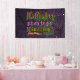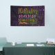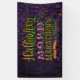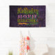 Película de Halloween en progreso en verde y naranja con letras de marqués moradas luces en tipografía morada con fondo salpicado de naranja