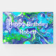 Banner de la fiesta de cumpleaños personalizado de arte moderno de mármol abstracto y azul y verde.