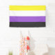 Este diseño presenta la bandera del orgullo no binario, que representa a personas que se identifican como no binarias (también escribidas no binarias) o generadoras, involucrando un espectro de identidades de género que no son exclusivamente masculinas o femeninas, sino que están fuera del binario de género. Las identidades no binarias pueden caer bajo el paraguas transgénero, ya que muchas personas no binarias se identifican con un género que es diferente de su biología. Un término informal para no binario es "enby", que viene de la abreviatura NB. Las personas no binarias pueden identificarse como que tienen dos o más géneros, sin género, moviéndose entre géneros, con una identidad de género fluctuante y siendo de tercer género u otro género.