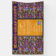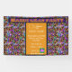 Estandarte personalizado del evento de la empresa Mardi Gras Company con el logotipo de la empresa, la descripción del evento y la información de contacto.