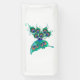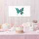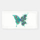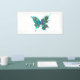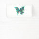 Mariposa pintada de forma artística, ficticia, verde, detallada, con plumas verdes, hermosas, de pavo real sobre fondo blanco.