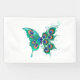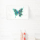 Mariposa pintada de forma artística, ficticia, verde, detallada, con plumas verdes, hermosas, de pavo real sobre fondo blanco.