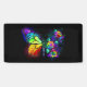 Arcoiris, mariposa monarca luminosa, pintada de forma artística con ramo de iridiscente, rosas brillantes y luminiscentes sobre fondo negro. Mariposa arcoiris.