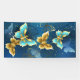 Composición de vuelo, joyería, oro y mariposas oscuras sobre fondo de joyería texturada. Mariposa dorada.
