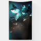Mariposas brillantes nocturnas de menta sobre fondo abstracto negro.
