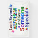 Inspiradora cita de "Mira más allá del AUTISMO y ves a alguien especial" con coloridos rompecabezas de autismo para apoyar a los niños autistas y sus familias.