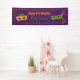 ¡Acoja con satisfacción a sus huéspedes a una fiesta de cumpleaños del carnaval con esta bandera de invitación, brillante y colorida! Tiene dos máscaras imaginarias con las plumas con diversos detalles en ellos. Las gotas púrpuras, verdes y amarillas rodean la bandera como frontera decorativa. ¡También grande para los fiestas temáticos de la mascarada o del carnaval! ¡Personalice con su mensaje para las huéspedes!
