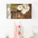 El encantador Mason Jar y el White Daisies Country Wedding Banner se pueden personalizar para dar la bienvenida a sus invitados y dirigirlos a su ceremonia de matrimonio y recepción. Este rústico cartel de boda de personalizados de moda o de rancho muestra una pintoresca fotografía floral de un frasco de vidrio lleno de un ramo de flores de margarita blanca con un fondo de granero marrón.