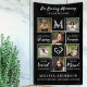 Honre a su ser querido con un cartel funerario único personalizado en un moderno diseño negro. Este cartel de collage de fotos conmemorativas es perfecto para un cartel de bienvenida funeraria o una exhibición de fotos del funeral. Esperamos que su monumento conmemorativo en el cartel de la memoria les traiga alegría, paz y recuerdos felices. Cita: "En la memoria amorosa, de una vida bien vivida..." Tu vida era una bendición, tu memoria un tesoro , eres amor más allá de las palabras , perdida más allá de la medida " Ver ‘personalizar esta plantilla' para cambiar fotos, monograma inicial y nombre .COPYRIGHT © 2020 Judy Burrows, Black Dog Art - Todos los derechos reservados. Banner del funeral de memoria de amor personalizada para Collage de fotos