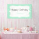 Banner de la fiesta de cumpleaños del patrón de puntos de la menta mágica y la polka blanca. El diseño presenta un patrón de puntos de polka blanco sobre verde menta y una forma blanca en el medio con el texto personalizado.