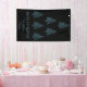 Patrón de árbol de navidad Navidades azul metálico negro Fiesta Banner Mensajes de texto Feliz Navidad La familia Williams, puede cambiar todo el texto