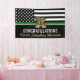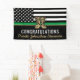 This graduation design features a military flag with black and white stripes, and a thin green line stripe as well. The gold army boots sits above the name of the graduating sergeant, captain, soldier, lieutenant or general.