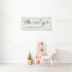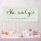 Banner de ducha de novia verde menta con texto en una tipografía linda y cursiva, "Ella dijo que sí". Personalizado con el nombre de la futura novia y su fecha de ducha.
