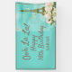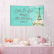 Banner verde de menta y azul verde azulado con purpurina dorado Sweet 16 Happy Birthday con la Torre Eiffel de París y flores de marfil.