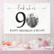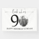 Celebra un hito en un estilo atemporal con este sencillo pero impactante cartel de fotos en blanco y negro. Con la audaz frase "Look Who's 90" (Mira quién tiene 90 años), está diseñado especialmente para fiestas de cumpleaños 90 para hombres. Personalice el cartel agregando su foto favorita para crear una decoración significativa y memorable que honre al invitado de honor con elegancia y encanto.
