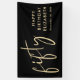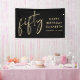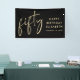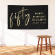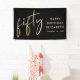 Banner de la fiesta de cumpleaños número 50 negro de moda y cartel de bienvenida que muestra "cincuenta" exhibidos en un elegante guión de oro y tu nombre y la fecha en letras de oro modernas.