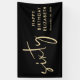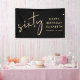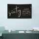 Banner de la fiesta de cumpleaños número 60 negro de moda y cartel de bienvenida que muestra "sesenta" exhibidos en un gran guión de oro y tu nombre y la fecha en letras de oro modernas.