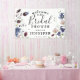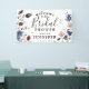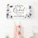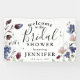 Pancarta de ducha de moda Boho Wildflower Bridal. El diseño presenta un fondo blanco clásico decorado con flores silvestres de primavera y verano y vegetación botánica en impresionantes tonos rosa pálido, azul bonito, burdeos profundos y blancos delicados. La plantilla "bienvenidos a" es fácil de personalizar con la plantilla proporcionada. En nuestra colección de 'Flores silvestres bohemias' se pueden encontrar artículos de papelería boda que coincidan.