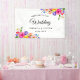 Elegante cartel boda de flores silvestres coloridas de moda con hermosas flores y hojas. Bienvenido a sus huéspedes con esta moda y la colorida y brillante bandera de bienvenida boda. Con un vibrante diseño floral con una gran variedad de audaces flores silvestres rosas, amarillas, naranjas y violetas, este banner exuberante de belleza natural y encanto alegre. La tipografía elegante realza la estética fresca y elegante, convirtiéndola en la pieza de exposición perfecta para bodas de jardín, rústicos, bohemios o al aire libre. Ya sea que se exhiba en la entrada de la ceremonia o en el lugar de la recepción, esta bonita pancarta le da un toque cálido y acogedor, lo que le da al escenario un ambiente animado y romántico.
