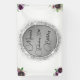 Un elegante cartel de cumpleaños con flores moradas en las esquinas y un círculo plateado con purpurina plateado donde se puede personalizar el evento. Glam girly vibes.