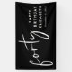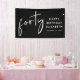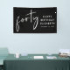 Banner fiesta negro de 40 años de moda y cartel de bienvenida con "cuarenta" exhibidos en un elegante guión blanco y tu nombre y la fecha con letras blancas modernas.