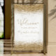 The top and bottom borders of this elegant sign are decorated with gold faux glitter. Customize the text in gold-colored handwriting script and serif fonts on a white background.