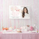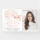 Celebrate your 2026 graduate with this pink and gold graduation party banner, featuring a blush grad cap, gold tassel and sparkling fireworks with photo template. A modern, elegant design perfect for a stylish high school or college grad celebration.