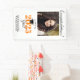 This vertical banner features a graduation design with a square photo frame for a picture of the graduate. Personalize this modern banner with the graduate's name. The text reads: "Congratulations! Class of 2023 Grad" with the year in orange. The design is accented with calligraphy text and a graphic of a graduation cap.