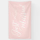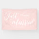 La moderna pancarta de la recepción de la boda es un banner sencillo de color rosa para el fiesta de la recepción nupcial en el lago Tahoe o en cualquier lugar con montañas. Este elegante diseño "Just Married" es un divertido complemento al coche de escape de la pareja. La fiesta nupcial perfecta para la decoración boda de la excursión nupcial a las montañas o los bosques salvajes. Personalizar el espíritu del exterior con el nombre de la novia y del novio, el destino y el año de la fiesta nupcial. Ya sea que esté haciendo glamour junto a la fogata o haciendo senderismo por el desierto, esta colección es perfecta para usted.