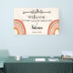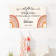 Personalizar y personalización, moderno y editable Aqeeqah Signo de bienvenida, niño personalizado o anuncio de nacimiento islámico chica Aqiqah Decor, arcoiris boho estética Colores neutros Baby Shower Signage. Pancarta de bienvenida de bebe fiesta de color crema de caligrafía árabe de Bismillah de Arabix.