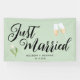 El moderno Banner de la recepción de la boda es un sencillo banner de bodas para el fiesta de la recepción de bodas. Este elegante diseño "Just Married" es un divertido complemento al coche de escape de la pareja. La decoración boda se completa con tulipanes florales y copas de champán. Personalizar con el nombre de la novia y del novio y la fecha boda de la fiesta nupcial.