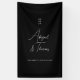 Moderno, mínimo, letra manuscrita, banner boda negro. Bienvenido a sus invitados con estilo con este elegante banner de boda, con un fondo negro limpio y un estilo de letra elegante y moderno. El diseño minimalista mantiene el foco en los nombres y la fecha boda, creando un aspecto refinado y sofisticado que se combina de forma bonita con cualquier tema boda. Este banner personalizado es perfecto para entradas de ceremonias, zonas de recepción o como un impresionante telón de fondo fotográfico. Fabricado con material ligero y duradero, es fácil de configurar y hace una adición intemporal a su decoración boda. El texto del personalizable le permite ajustar el tipo de letra y el diseño para que coincida con su estilo boda único. Haga que su día especial sea aún más memorable con esta moda y un gesto de bienvenida subestimado. ¡personalizar tuyo ahora!