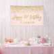 Pancarta glamorosa rosa y purpurina de oro falso dulce 16 cumpleaños. Los diseños son ilustraciones impresos planos/gráficos - NO PURPURINA REAL.