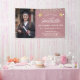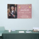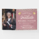 Guión de moda moderna Graduación Foto de yarda de foto para mostrar lo orgulloso que estás de tu graduación! Personaliza con tu imagen, nombre, escuela y clase favoritas, así como un mensaje de personalizado". Este diseño de color gris rosado con luces de cuerda es elegante y sencillo con tapones de grad dorados impresos.