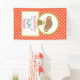 Pancarta personalizada de ducha de bebé. Diseñado con un mono bebé adorable que sujeta un pacificador en su boca dentro de un círculo con un borde verde oliva. El fondo es un patrón de puntos de polka blanco y naranja. Las letras de la palabra bebé están colgando de una flecha de estilo boho.