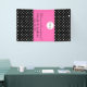 Patrón monogramado de puntos de polka en blanco y negro. La polka blanca se pone de negro con una pancarta de bienvenida boda rosa caliente.