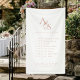 Bienvenido a sus huéspedes con estilo, con este elegante banner de boda que funciona como horario del día. Con un diseño de monograma intemporal, tipografía limpia y un diseño moderno, sirve como una hermosa pieza de decoración y como guía práctica para tu cronología boda. Elegante, clásico, monograma, blanco-negro, bienvenida Boda y orden de los eventos Banner. Perfectamente colocado en la entrada de la ceremonia o en el lugar de la recepción, este cartel personalizado incluye los nombres de la pareja, la fecha del boda y un claro desglose del flujo del evento -desde votos hasta recortes de tartas. Una minimalista necesidad para parejas que valoran la belleza y la claridad. Personalizar ahora para igualar tu visión del día de la boda y crear una primera impresión pulida que dura.