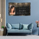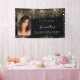 Una pancarta para una fiesta de cumpleaños glamurosa y femenina de 21 años (o de cualquier edad). Un fondo negro de moda con polvo falso purpurina de oro. Personalice y agregue su propia foto vertical del chica de cumpleaños. El nombre está escrito en un guión moderno de estilo con letras a mano. Letras blancas.