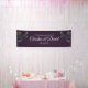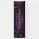 Elegante invitación a las bodas con flores moradas y decoración de color púrpura oscuro, adornada con rosas color marrón y marrón rosa y vegetación sobre un fondo morado oscuro para un aspecto gótico boda. Las flores adornan las esquinas para un aspecto elegante, moderno y refinado.