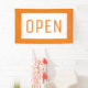 Abrir la bandera de signo. Sencillo fondo blanco y naranja con un marco.