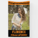 Celebra tu graduación con esta pancarta de graduación de Colores de la Escuela de Enhorabuena Negra. Personaliza con su nombre, foto y año de clase. La pancarta del espíritu de la escuela presenta una gran foto con acentos negros y naranjas y mucho espíritu escolar.