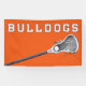 Banner del equipo de Lacrosse con diseño de palos laxos sobre fondo naranja. Edite texto a personalizar para su fiesta de lacrosse, evento de equipo, día de juego o celebración de la noche anterior.