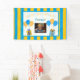 Banner de la fiesta de cumpleaños del niño, rayas azules y Naranjas y la foto de su bebé. Sólo tiene que cambiar la imagen, el nombre y la edad en el área de personalización.