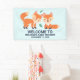Banner de evento (ducha de bebé, cumpleaños, etc...) con un ilustracion gráfico de 2 zorros naranjas que parecen lindos y felices.