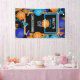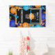Lona Naranja y Baloncesto Azul Paint Splatter Cumpleaño