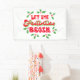 Esta pancarta fiesta Navidad presenta un diseño festivo LET THE FESTIVITIES BEGIN con letras decorativas, hebillas y bayas.