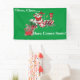 Esta pancarta de tela es verde con un tren de caramelo de menta llena de dulces y cartas a Santa Claus y un lindo Santa Claus. Personalizar el texto Choo, Choo Here Comes Santa con la plantilla.